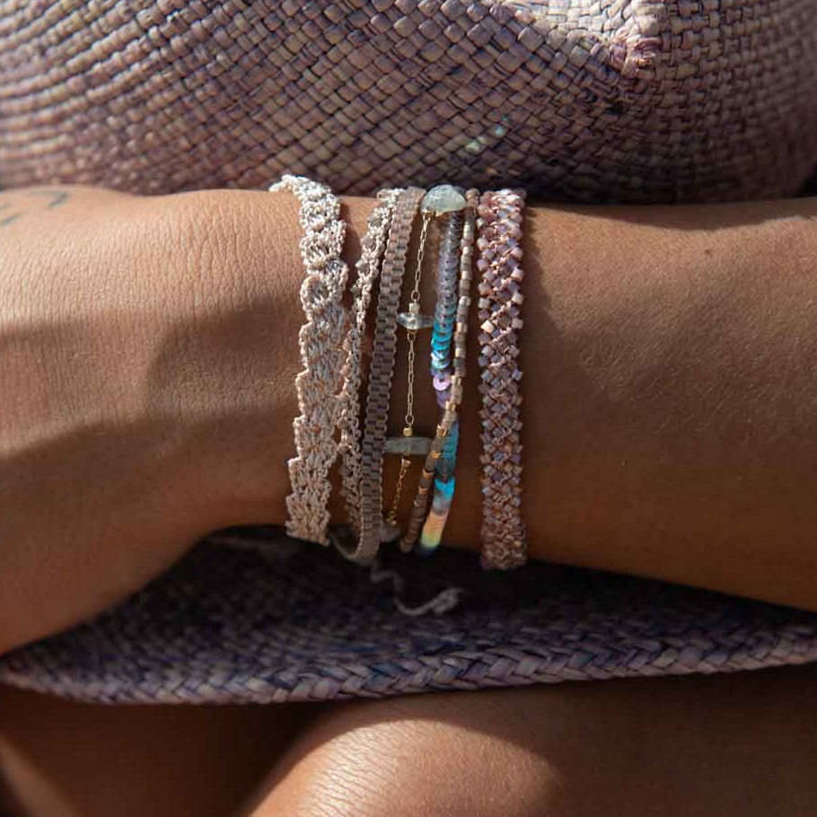 Häkel Armband mit verschiedenen Edelsteinen & Vermeil Perlen