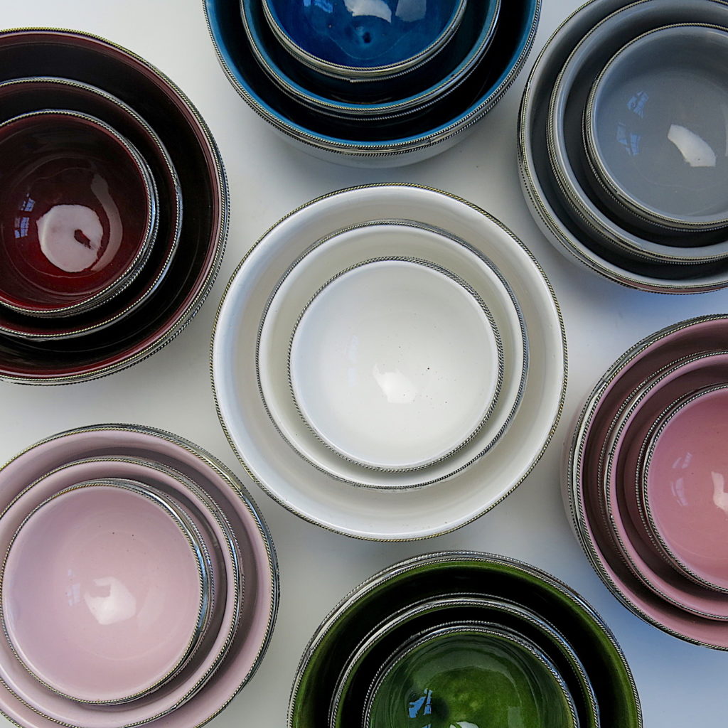 MAROKKANISCHE KERAMIK SCHALEN MIT SILBERRAND – SET 3 SCHALEN