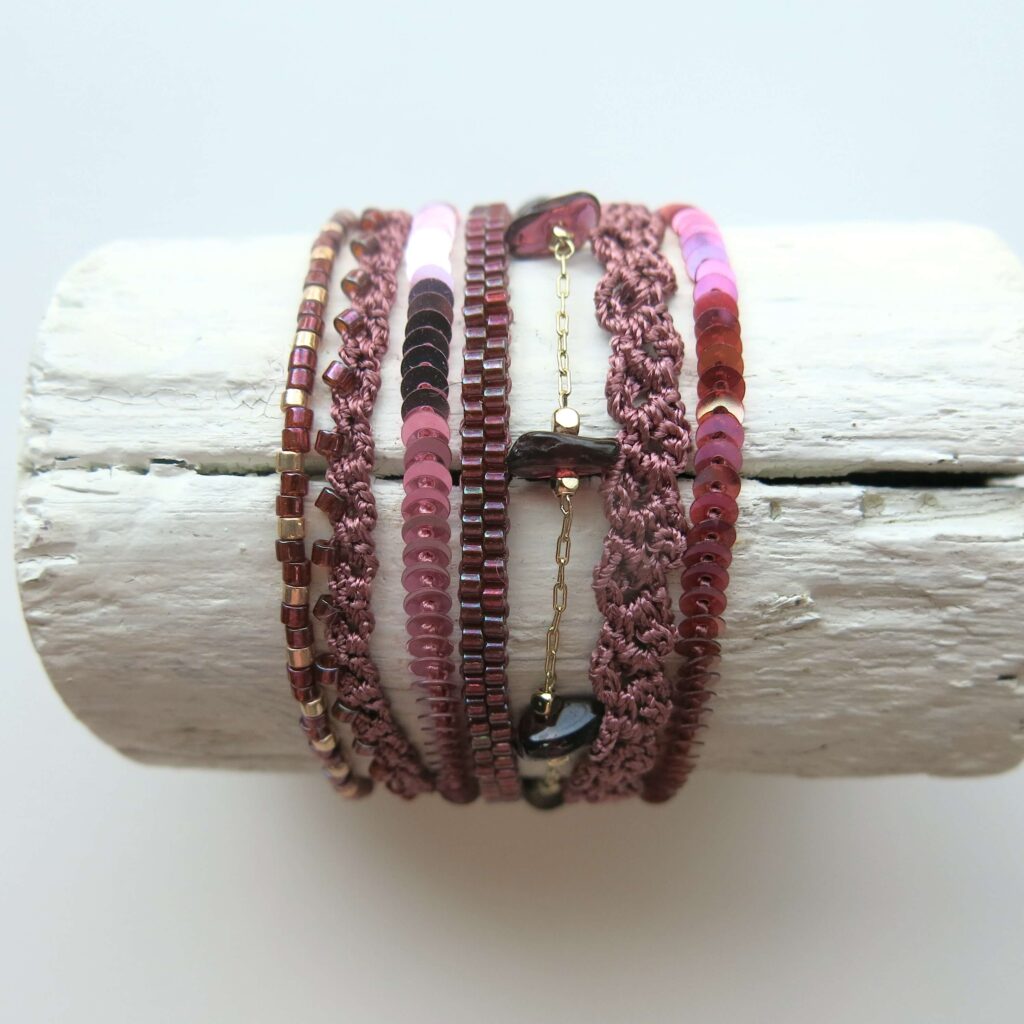 Feines Häkel Armband mit verschiedenen Edelsteinen