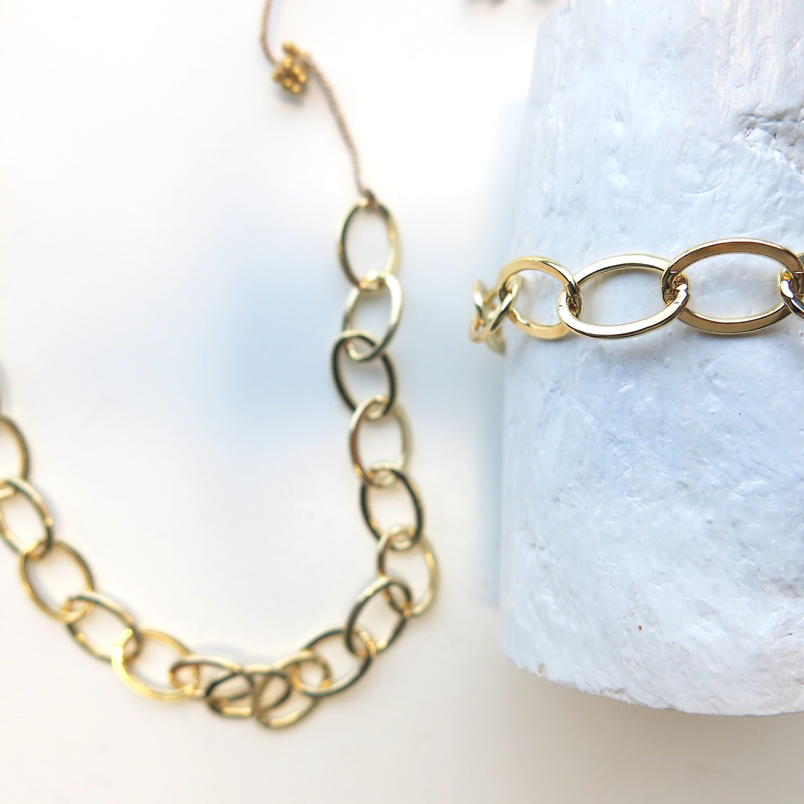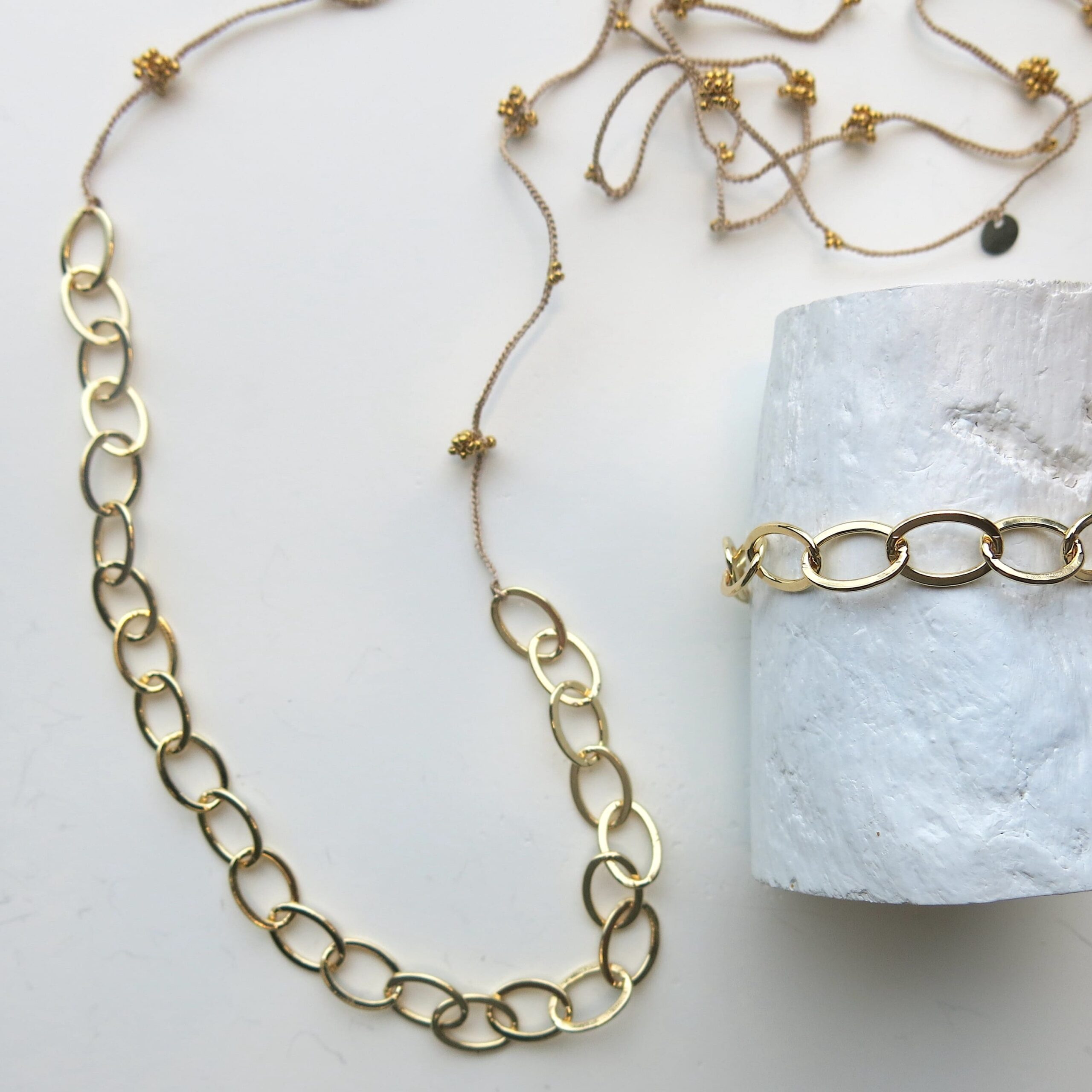 Armband COS PL ist aus einer plated 18 KT Gold Oval Metallkette (Messing) gearbeitet.