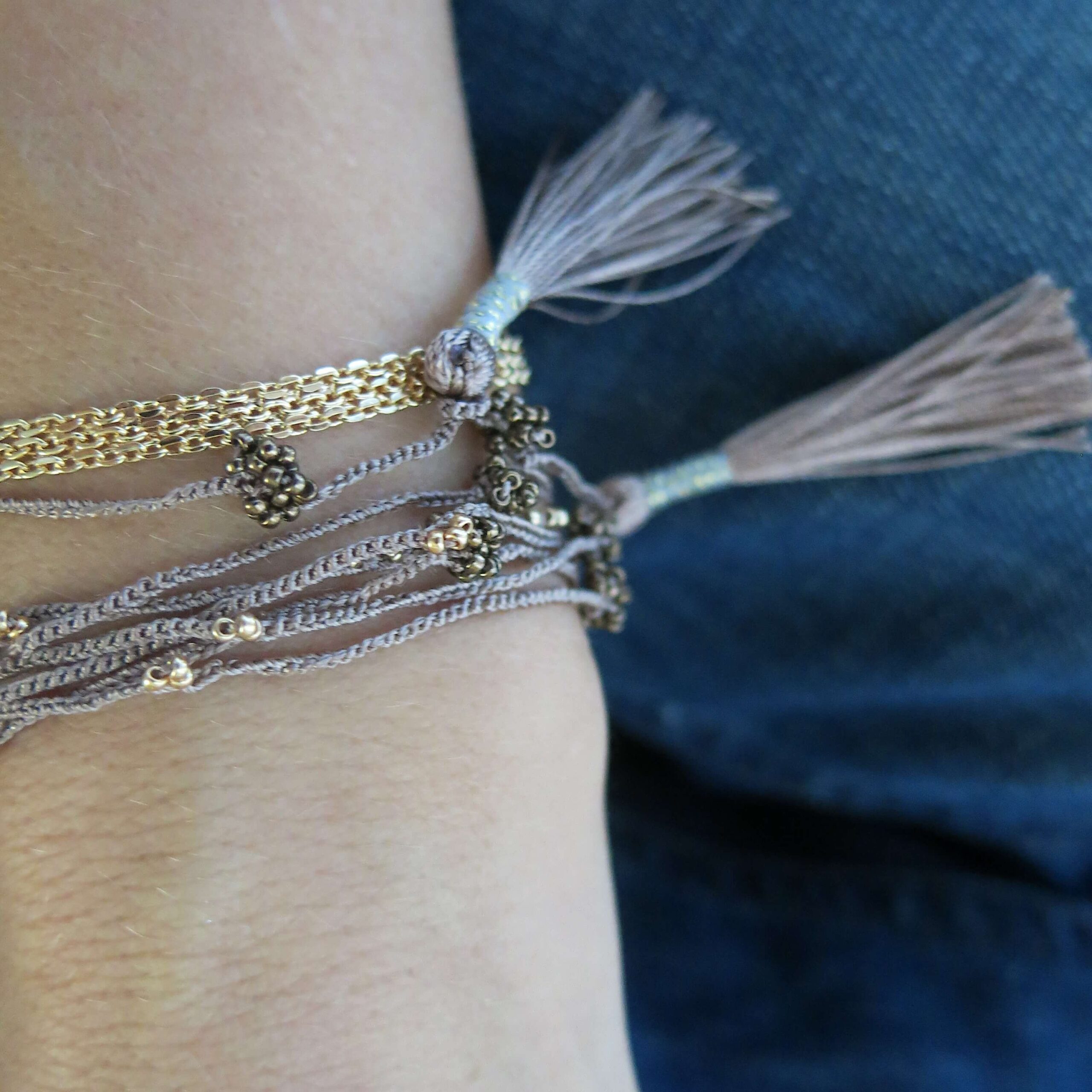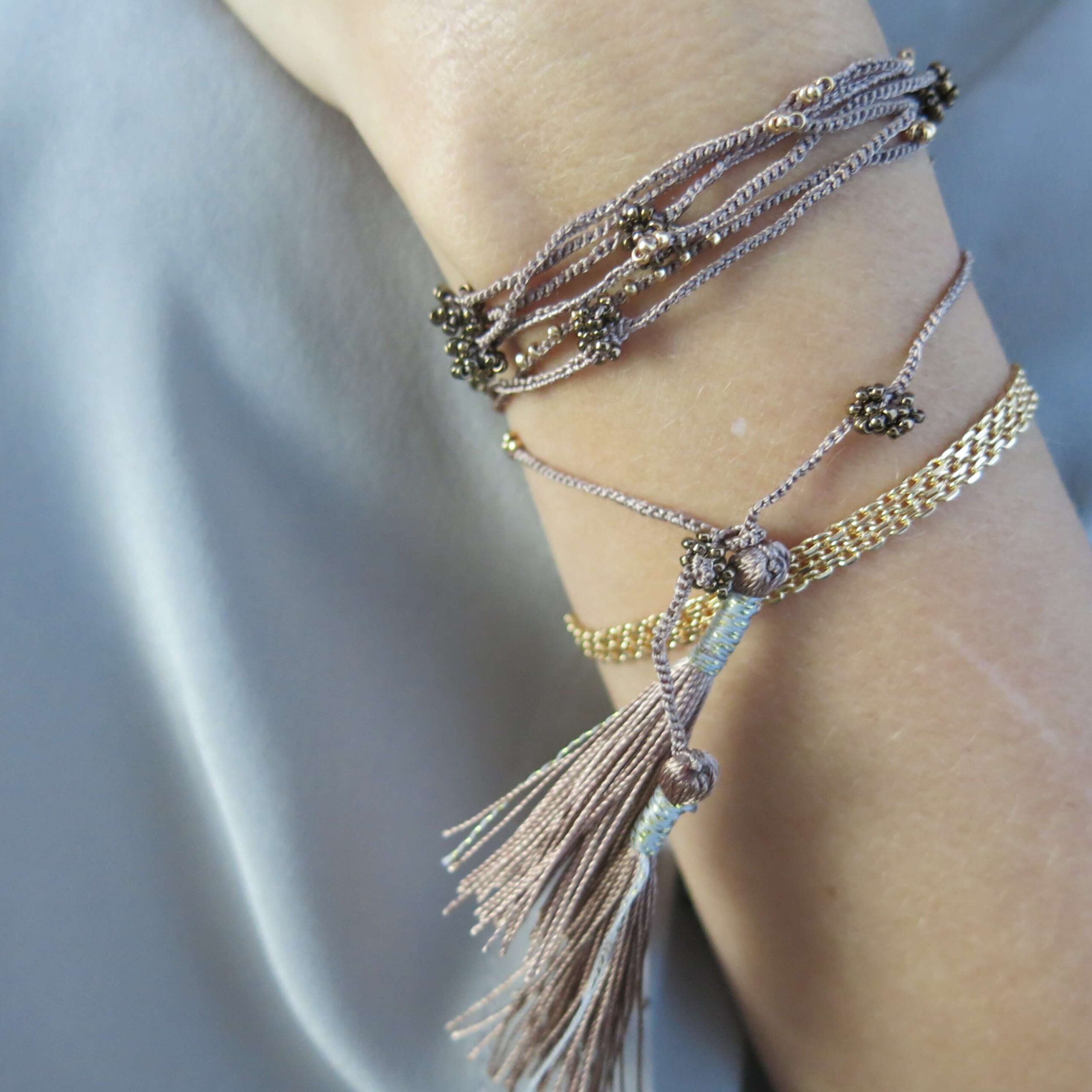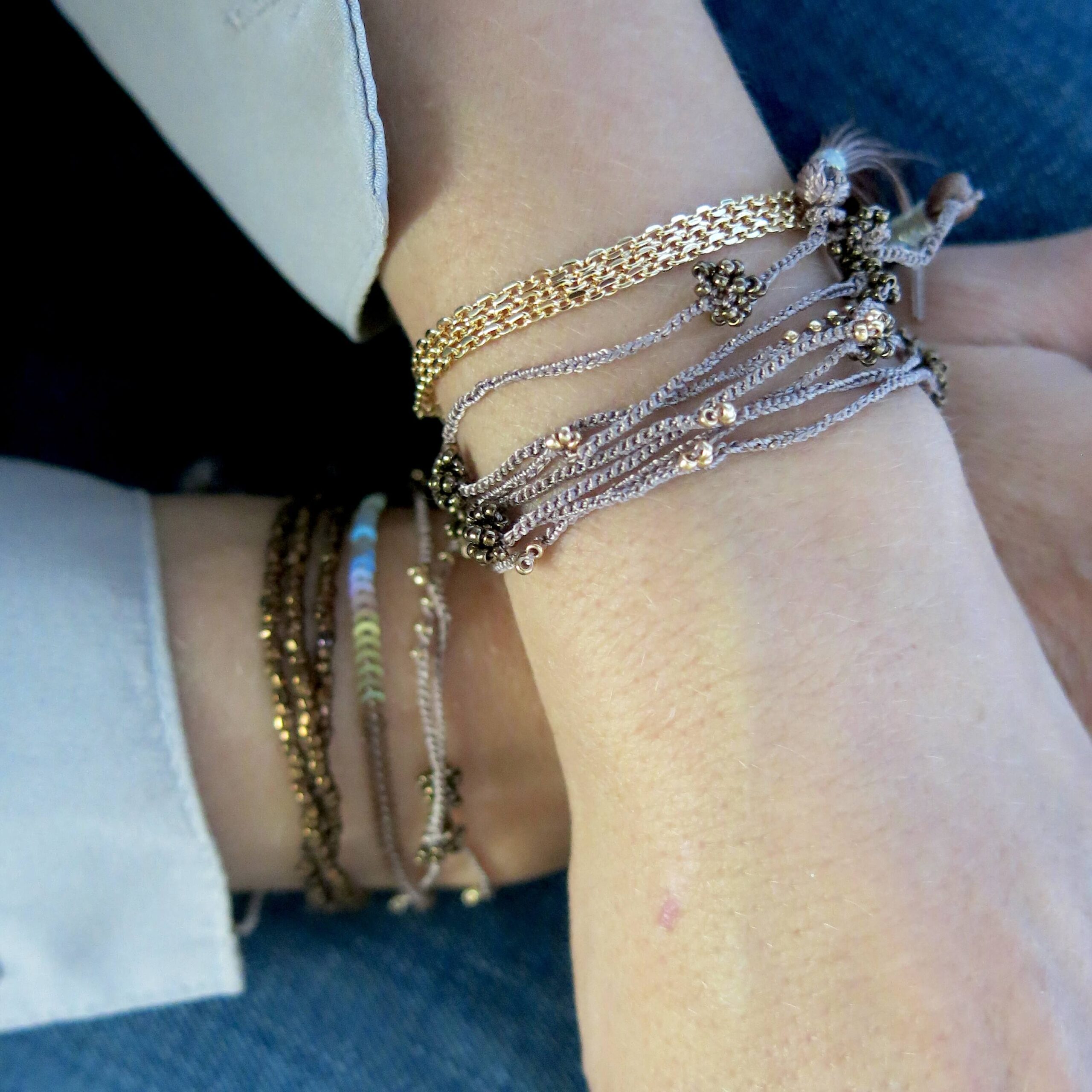 Die Accessoires wirken auf den ersten Blick eher ’schlicht‘ – beim näheren Hinschauen erkennt man die filigrane und aufwendige Handarbeit. Trotzdem soll ‚der Look‘ eher schlicht und dezent sein. Ein Accessoire, welches man täglich tragen kann und was sich leicht kombinieren lässt. Die Armbänder aus der Kollektion lassen sich untereinander wundervoll zusammen stellen, aber auch in Kombination mit anderem Schmuck harmonisieren sie sehr schön.