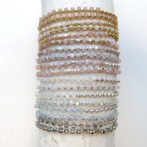 Die Armbänder sind so leicht, dass man Sie immer tragen kann. Selbst zum Duschen, Baden können Sie sie anlassen. Die hochwertigen MIYUKI Perlen und das feine Polyester Garn sind sehr beständig.