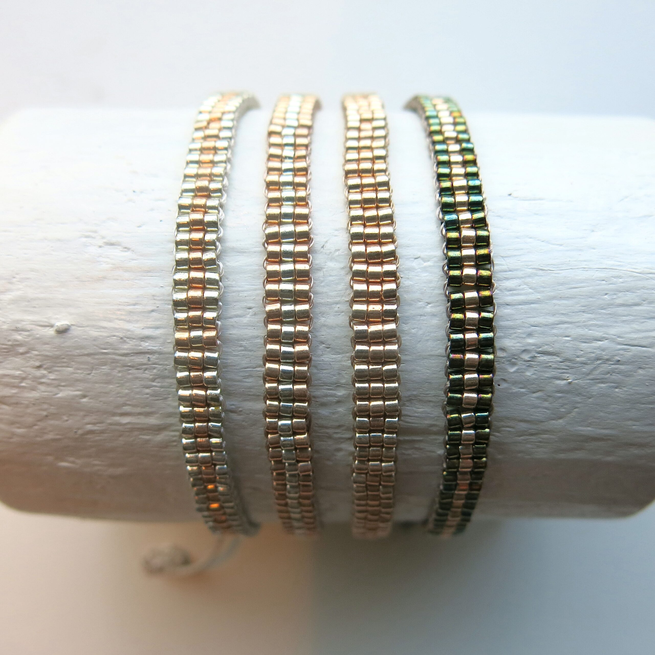 Die Armbänder sind so leicht, dass man Sie immer tragen kann. Selbst zum Duschen, Baden können Sie sie anlassen. Die hochwertigen MIYUKI Perlen und das feine Polyester Garn sind sehr beständig.