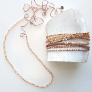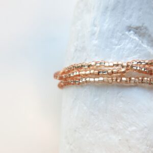 Die Accessoires wirken auf den ersten Blick eher ’schlicht‘ – beim näheren Hinschauen erkennt man die filigrane und aufwendige Handarbeit. Trotzdem soll ‚der Look‘ eher schlicht und dezent sein. Ein Accessoire, welches man täglich tragen kann und was sich leicht kombinieren lässt. Die Armbänder aus der Kollektion lassen sich untereinander wundervoll zusammen stellen, aber auch in Kombination mit anderem Schmuck harmonisieren sie sehr schön.