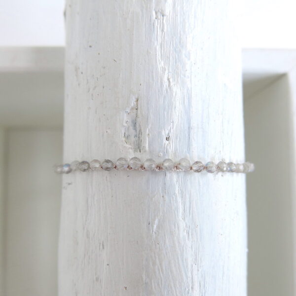 Modell ‚JASMIN‘ ist ein feines gehäkeltes Armband aus gesamt 35 Steinen eines Edelsteines – es gibt 7 verschiedene Varianten bzw. 6 verschiedene Edelsteine: Süßwasserperle (in zwei Garnvarianten), Granat, Mondstein taupe, Rauchquarz, Pyrit und Labradorit.