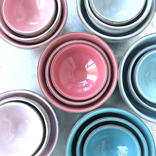 Diese handgefertigte Keramik stammt aus Safi – ich habe sie in Marrakech bei einem ‚artisant‘ entdeckt: Die typische marokkanische Keramik mit dem Silberrand aus ‚Maillechort Silber‘. Die handgefertigten Schälchen sind wunderhübsch zum Servieren von kleinen Speisen, Snacks, Dips aber auch für Bad oder andere Räume sehr dekorativ.