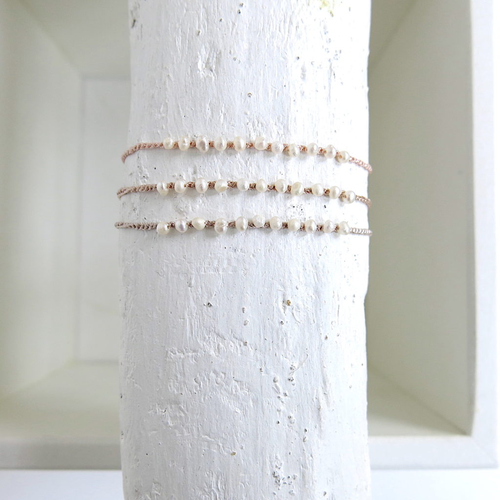 Cremefarbenes Häkel Armband mit Süßwasserperlen