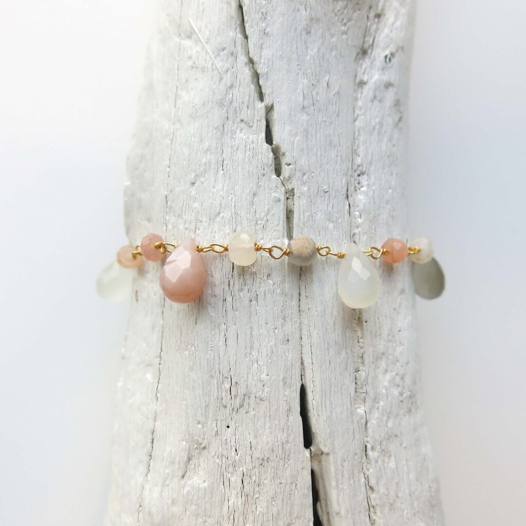Gehäkeltes Armband mit natürlichem Mondstein Edelsteinkettchen